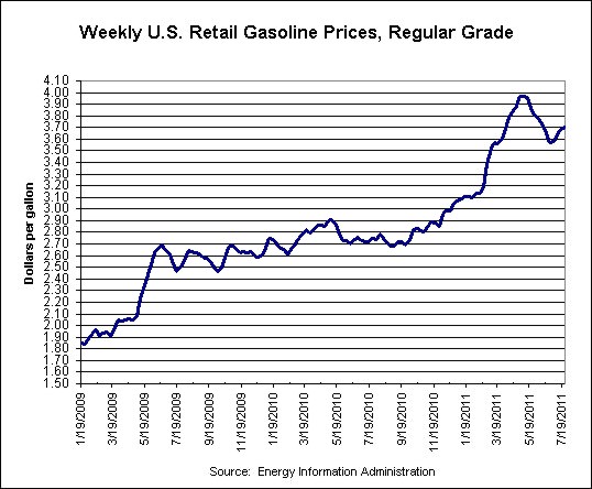 Wow. Take a look at this graph. It shows the trend of the weekly average price of regular gas across the country. Is it any wonder that we’re trying to squeeze the last pennies out of our tanks?