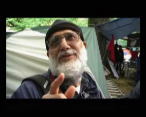 Near the Communications tent is the Food Service area, where volunteers keep a steady stream of donated food going for the campers. A.O. Noor Mohamed (I’ll call him “Noor” in this article) recognized me from the 350.org “Moving Planet” event that Tom Dwyer