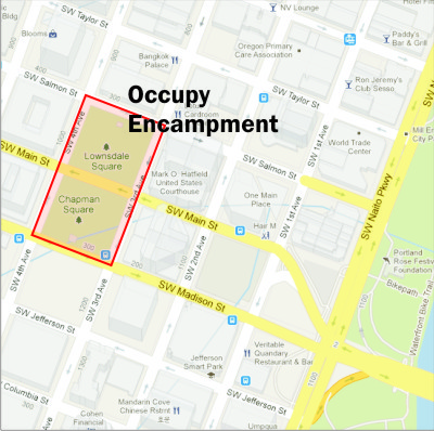 Occupy Portland was one of earliest on the list and continues to maintain one of the most active groups. Their occupation of Lownsdale and Chapman parks (downtown on either side of the elk statue on Main Street) is now entering its fourth week.