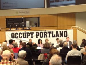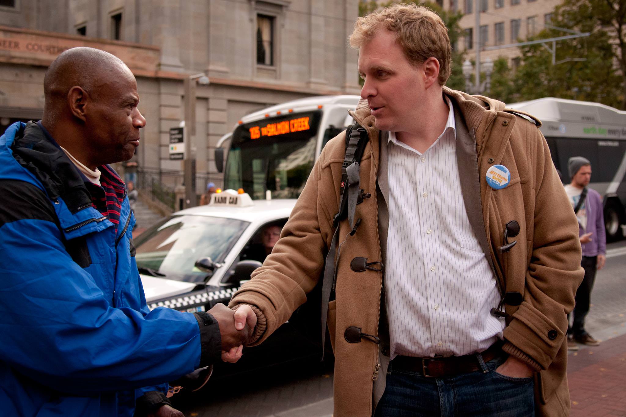 to elevate awareness of growing income inequities than Occupy.” He is one of the only mayoral candidates that did not back an immediate move to evict the protestors. “It wasn’t because I wanted folks violating park codes, but if we had been the first major city to evict, even before Oakland, I’m not sure our result would have been much better”. Again, Jefferson’s view of Portland’s people and energy as a resource rather than an obstacle colors his approach. Instead of setting arbitrary time limits, he says he would have set conduct benchmarks. “I would have told them, look, I support the 1st amendment, but we can’t have cops pushed in front of busses. I would have looked for positive directions to use and channel that energy”. He pointed to some of the really good things that have come out of Occupy, like Move Your Money, help with foreclosures, Saturday market for nonprofits, and 99 Actions for the 99 Percent. Opening these avenues to the Occupiers and supporting their efforts could make a huge difference. “I’m not saying it would work any better than what the Mayor did, but it would surely work better than a use of force from the outset”.