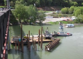 It’s still quiet around the Sellwood bridge as we wait for the salmon migration to finish so in-water work can resume again on July 1. However, there is current activity both visible and invisible.