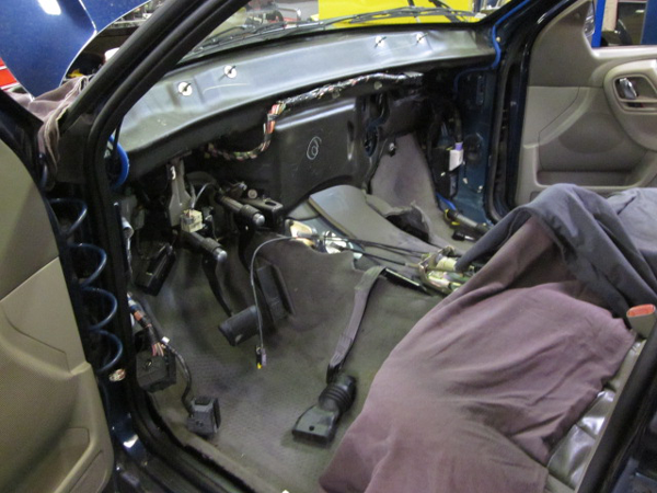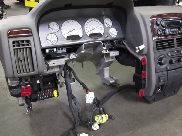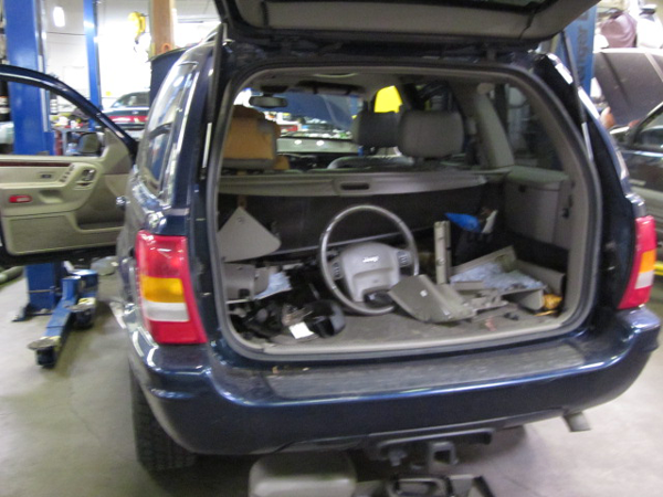 This classic example of a “high labor to parts ratio” repair doesn’t revolve around any particular vehicle make. In many vehicles replacing the heater core is a real pain. The heater core is a small radiator-like object responsible for bringing engine heat into the passenger cabin for climate control. The heater core is located under the dash, usually behind the glove box. When it goes bad, antifreeze may leak into the cabin, your windshield can fog, and your car might smell like antifreeze. When heater cores fail they need to be replaced; there aren’t many effective band-aids available. The heater core, normally a $150 to $375 part, usually requires the dash to be removed for replacement which requires as much as 10 hours and often more of labor. It’s hard to even recognize your vehicle when the dash and much of the interior is removed… take a look at these pictures of a heater core replacement in a Jeep Grand Cherokee. You can see why this “simple” repair can take a day or longer.