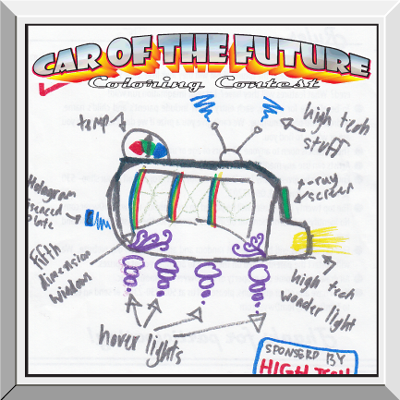 Chloe H., 10, took First Place this year with her deep consideration of alternative fuels… her cars run on sugar, song, and rainbows, but that’s not all… one runs on “Kawainess”. We thought that was a misspelling of some kind (and we spent quite a bit of time trying to figure out what she was trying to spell) until we looked it up online… it’s chiefly related to Japanese culture, and means the quality of being kawaii; cuteness. An under-utilized fuel, indeed!