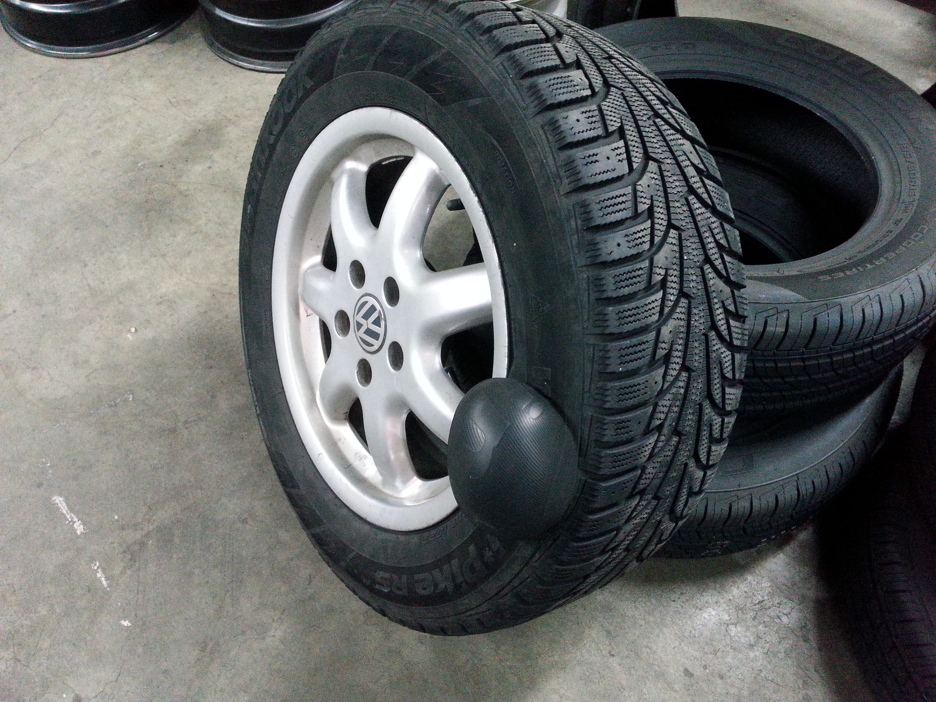 Few things are scarier than tire problems because if a tire fails while you’re driving then a “roadside breakdown” is one of the GOOD possibilities! That’s why we were so glad this tire failed so dramatically, and in our shop instead of on the road. The manufacturing defect in the sidewall popped out as soon as we aired it up but there was no help… it was off to the tire graveyard. (Just FYI, it’s usually possible to repair punctures on tires if the puncture is ON THE TREAD AREA. If it’s on the sides of the tire, it can’t be repaired and you’re going to have to buy a new tire.)