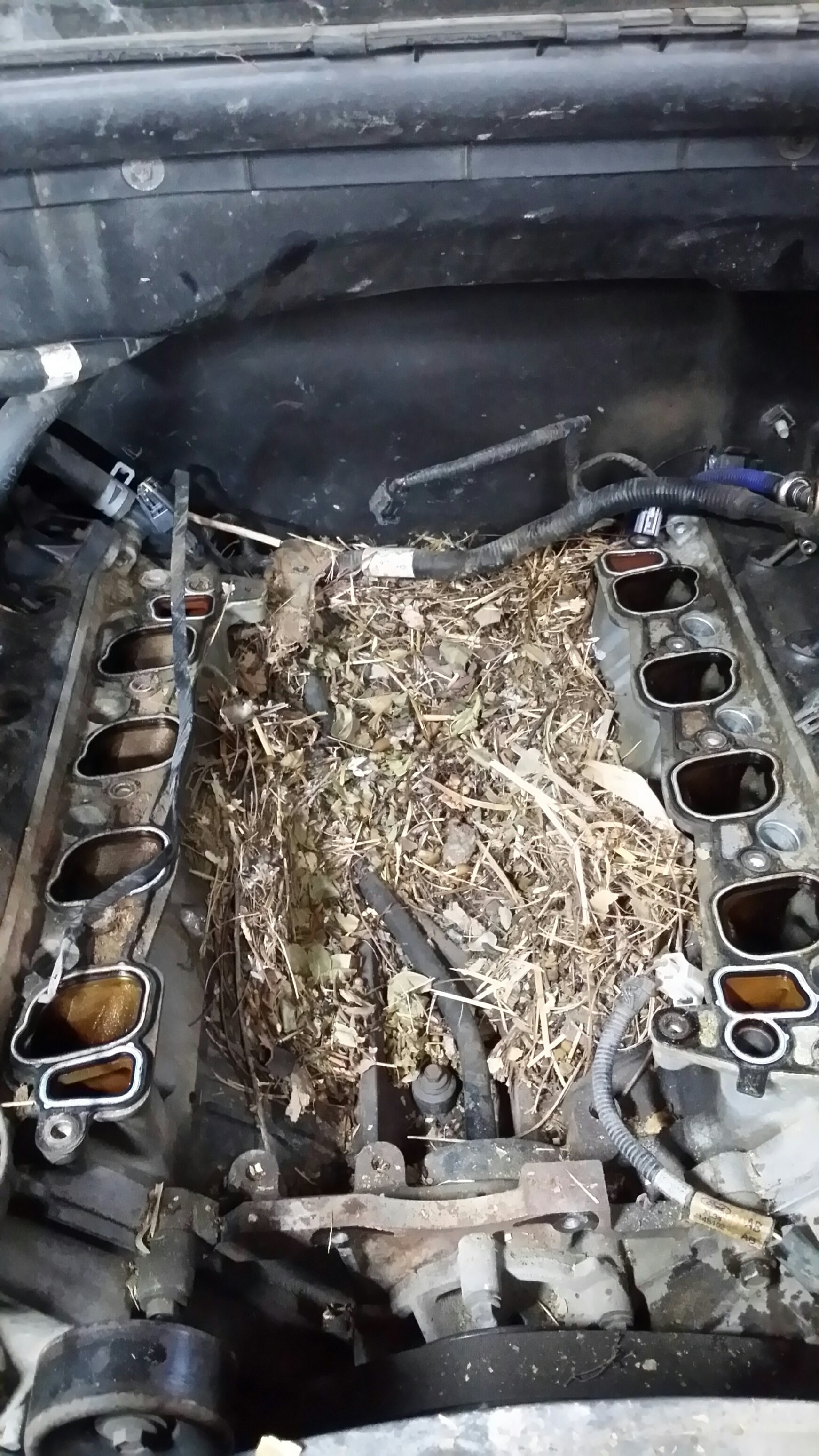 The Mummy Mouse above was a loner just passing through but we frequently run into vehicles that have become long term haunts for whole families of spiders, rats, and mice. These pictures come from a vehicle that had sat unused for years before the client decided to dust it off. The fairly elaborate rat nest in the manifold was an obstacle at first, but we were able to exorcise the evil spirits rodents and get him back on the road again.