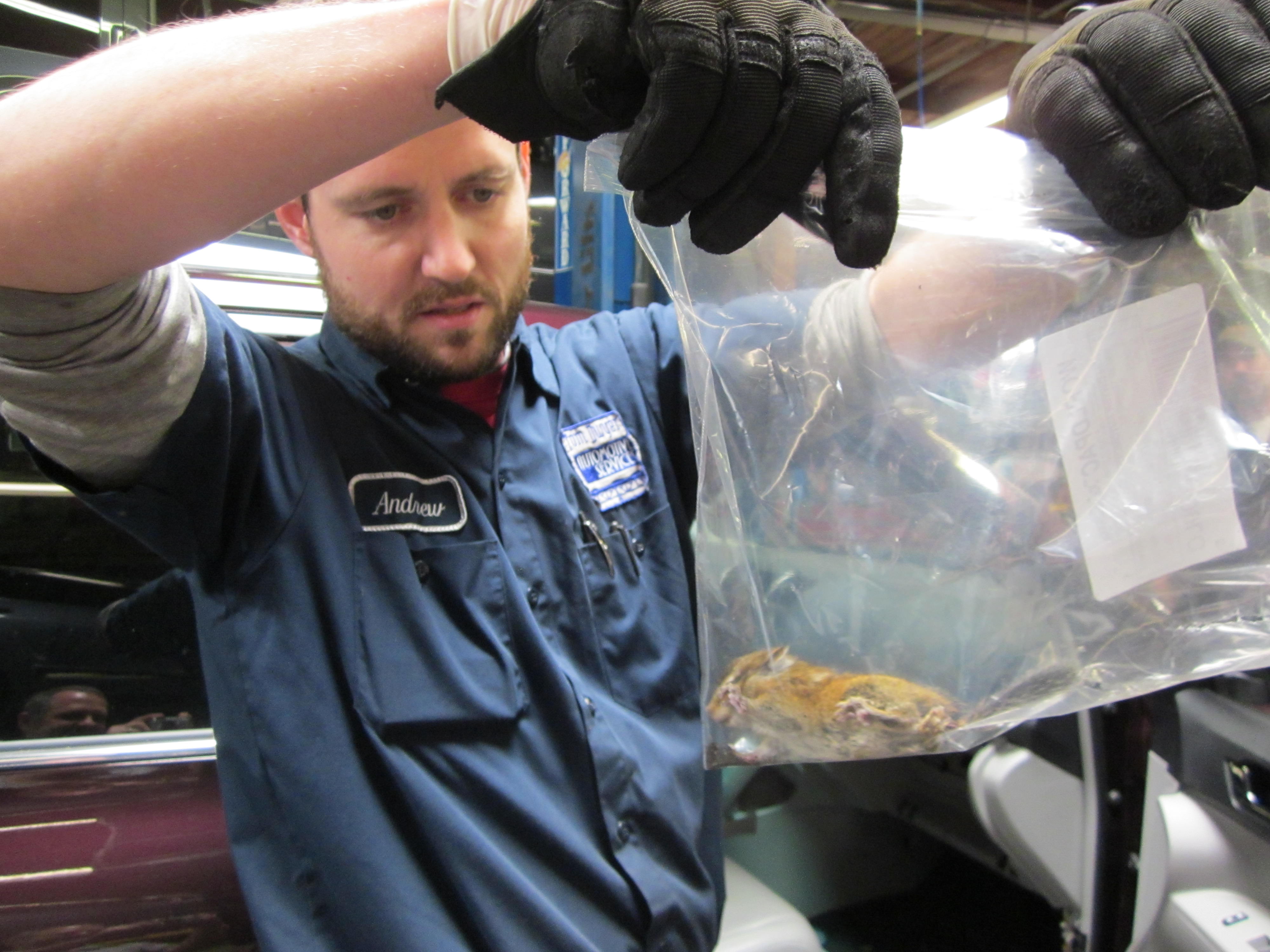 From the moment the Toyota Highlander slid into Andrew’s stall he knew he was facing a unique problem. The owners had seen evidence of rodents partying in their vehicle, but when they tried to break it up the rodents scattered like… well, like mice. Most got out but one took a bad turn and got stuck in the windshield pillar, nestled against the side curtain air bag. After waiting unsuccessfully for him to leave, the owners brought the Highlander in to us before the squeaking stopped. Getting Chippy out was no problem, but getting him out alive? The clock was ticking. Andrew loosened the cowling and gently prodded the very dazed chipmunk into an ASPCA-approved transparent polymeric small-animal transfer container. The whole Dwyer team helped transport the chipmunk to his new home in the blackberry bushes lining the Springwater Corridor. As Andrew opened the transfer container the chipmunk staggered out to the tune of “Born Free”, somewhat the worse for wear but ready to start his new life.