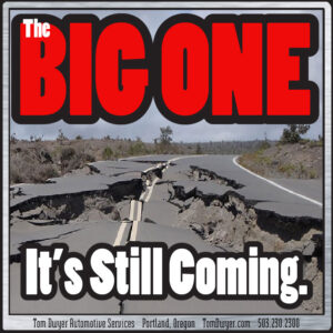 The Cascadia Subduction zone runs from Canada to California about 100 miles inland from the Pacific Coast… basically right through Portland.  It’s had 41 quakes in the last 10,000 years, the last being a 9.0 magnitude quake in 1700.  We’re due again.  This impending Big One makes the news every once in a while, people think about preparedness for a while, and then everyone fades back into their daily lives.  But the pressure under our feet continues to grow.  RestOfNewsletterSince we haven’t seen Big One Coverage in a while we thought we’d fill the gap ourselves. You didn’t plan on seeing this article and the Big One will come just as unexpectedly, but it WILL hit… what will you do?  If you don’t have a clear, concise answer for yourself and your family, then please spend a few minutes checking out these resources… and making a plan.