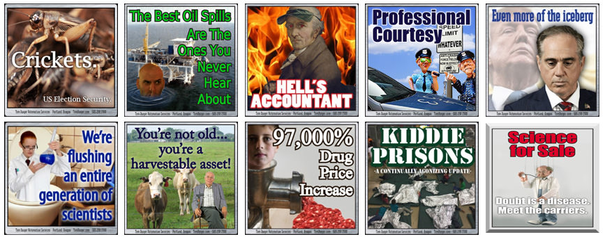We started our News To Make You Furious column in simpler times.  2010 brought the 20th Anniversary of the Exxon Valdez disaster, and investigative reporter Greg Palast seemed ready to recognize the event even if the rest of the Media ignored it.  We agreed, and ran Greg’s article in its entirety under the title “News To Make You Furious”.  But the next month there was more Furious news, and the month after that, and it seems there’s always been some new abomination to talk about.  We try to focus on issues that aren’t getting the appropriate media play, but sometimes it’s a deep dig on an issue that’s all over the airwaves.  No matter; you can be assured that News To Make You Furious will always be here to bring your heart rate up.  Wanna taste?  Check out our infuriating piece (actually, Washington Post’s infuriating piece) on the lies surrounding our 18 years in Afghanistan, and then rage through the other issues we covered in 2019.  If you like the taste of bile, you’ll be back next month!