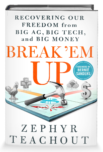 from the publisher– “Every facet of American life is being overtaken by big platform monopolists like Facebook, Google, and Bayer (which has merged with the former agricultural giant Monsanto), resulting in a greater concentration of wealth and power than we’ve seen since the Gilded Age. They are evolving into political entities that often have more influence than the actual government, bending state and federal legislatures to their will and even creating arbitration courts that circumvent the US justice system. How can we recover our freedom from these giants? Anti-corruption scholar and activist Zephyr Teachout has the answer: Break ‘Em Up.