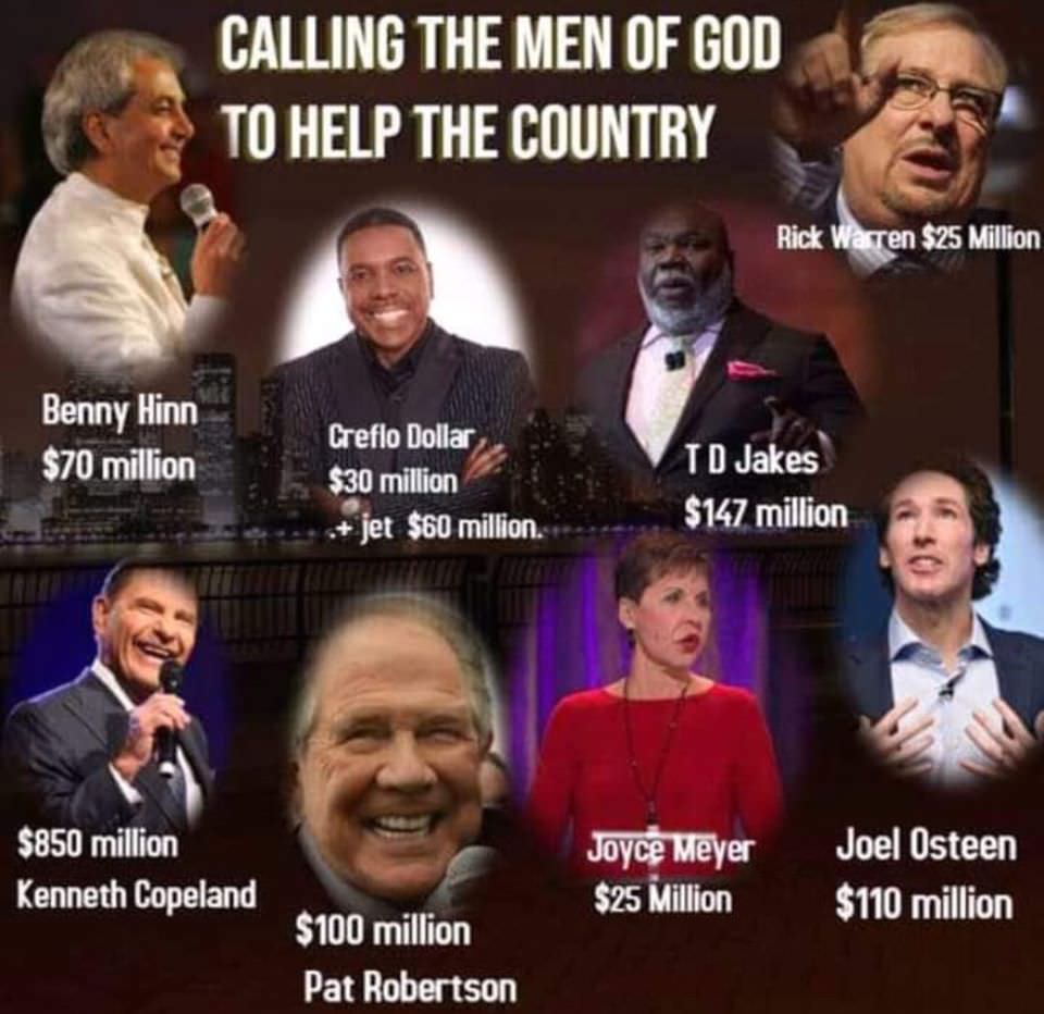 But among those billions are a few hundred people who use the ideas of God for things other than comfort. These caricatured gargoyles of human beings bilk the earnest religious of their money and lives year round, in good times and bad. While their primary food is money, they also enjoy false hopes and wash it down with a little swig of squandered lives. There’s was never a question of whether they’d amp up their cynical fraud in a globe-threatening emergency, and the news puts the exclamation point to that every day. The only question now is whether they’ll replicate faster than the virus.