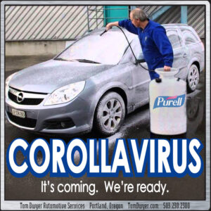 “Prepared.  I’d have to say we’re prepared,” said Tom Dwyer, when asked about his company’s response to the Coronavirus.  “We’re not panicking. We’re listening to the medical professionals and taking all appropriate precautions.”  But his face became grim as he continued.  “As humans we care most about the effects on people, but as automotive professionals our biggest worry is the spread of the virus to our clients’ vehicles.”  What?  A virus that spreads to cars?  It’s not talked about often in the mainstream media, but it’s not news… most human diseases have their counterparts in the automotive world.  YOU might be prepared for the pandemic, but here’s what you need to know to make sure your vehicle survives with you…