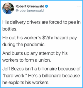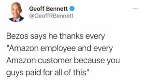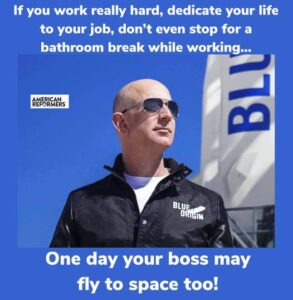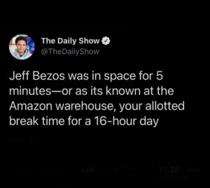 Jeff Bezos Thanks Amazon Workers and Customers for Making Him So Rich He Can Go to Space, Tim Murphy on Mother Jones, Jul 2021