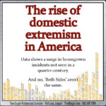 (from the Washington Post article) “Domestic terrorism incidents have soared to new highs in the United States, driven chiefly by white-supremacist, anti-Muslim and anti-government extremists on the far right, according to a Washington Post analysis of data compiled by the Center for Strategic and International Studies. The surge reflects a growing threat from homegrown terrorism not seen in a quarter-century, with right-wing extremist attacks and plots greatly eclipsing those from the far left and causing more deaths, the analysis shows… Since 2015, right-wing extremists have been involved in 267 plots or attacks and 91 fatalities, the data shows. At the same time, attacks and plots ascribed to far-left views accounted for 66 incidents leading to 19 deaths…”