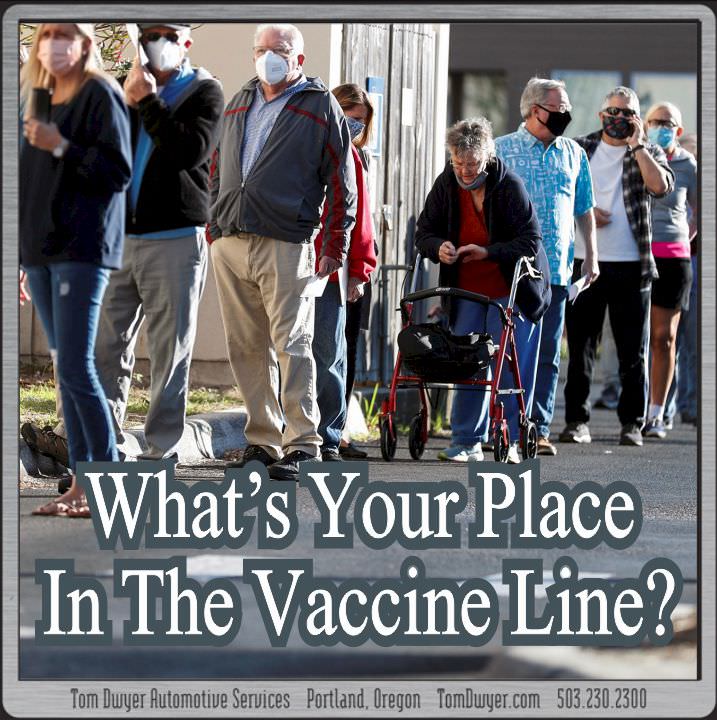 Instead of hoping for a vaccine that works, we now have five approved for use with hundreds more in development. That’s spectacularly good news for humanity but whether it’s good news for you is another question. Some people have already received their vaccination, but YOU may be days, weeks, or months from your own jab. Where are you in the line? The New York Times jumped in to help with their “Find Your Place in the Vaccine Line” calculator, and the Oregon Department of Health has all the details here at home. Our Dwyer Guinea Pig turned out to be behind 126.5 million people nationwide, and behind 273,000 fellow Oregonians. Anyone want to trade?