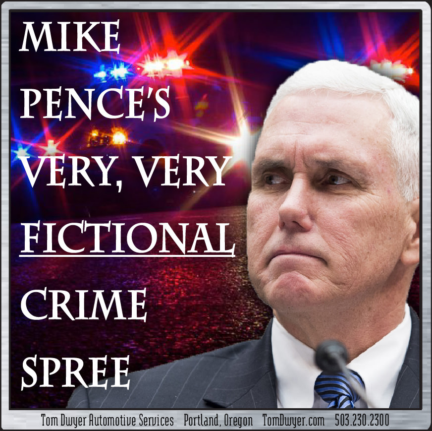 As we were fact-checking a recent lurid news claim we caught a glimpse of another fact-check: “Mike Pence Resigns”. Obviously they were explaining why that was a lie, but there were several others with it that were just as bizarre. Taken together, we thought they offered a fascinating glimpse of the toxic Orwellian mis-information scum sprinkler we’re all living under. So sit back and enjoy the Mike Pence Crime Spree that never happened… “Pence Eludes Capture, Military in Hot Pursuit” (fact check here), “Pence Shot While Fleeing Military Arrest” (fact check here), “Pence Arrested as Capitol Stormed” (fact check here),