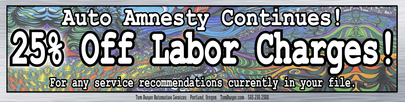 Our across-the-board Covid discount has dropped to 20%, but it’s not too late for you to still save 25%. If you’ve had service recommendations in your Tom Dwyer file since 1/31/21 (or before) but you just haven’t acted on them, then you can still save 25% off Labor Charges if you act on them before 4/30/21. Even during a pandemic your vehicle needs consistent care, and Auto Amnesty is a great way to catch up on the services you may have been putting off.