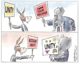 The Trump era is officially over, and we are a tired and wounded people. Our ‘leaders’ are pushing the balm of Unity, but superficial unity can’t spackle over deep and real discord. Unity, as a goal instead of a result, can be poisonous. For the sake of “ourselves and our posterity” we can’t come together until we’ve set a few things straight.
