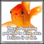 (from Agence France-Presse) “Goldfish may have short memories but, according to an Israeli university study, they might be able to drive. Researchers at Ben-Gurion University of the Negev found that a goldfish’s innate navigational abilities allowed it to steer a robotic vehicle towards a terrestrial target if given a food reward. To conduct their unusual experiment, the team placed a fish tank on a set of motorized wheels. A camera system then recorded the fish’s movements in the water and translated it into navigational directions – effectively moving the contraption in the direction where the fish bumped up against the glass. In a video released by the university, the fish can be seen “driving” the vehicle toward a visual target, a colorful mark on the wall of the experiment room, visible through the clear sides of the tank…”