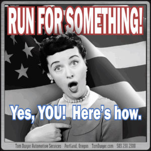 In a never-ending quest for common ground, we recently found agreement with Mitch McConnell’s lament about the Republicans’ poor ‘candidate quality’. No doubt there Dems who are just as pathetic but that’s not the point. The point is that each of us knows what really, truly needs to be done, but none of the candidates seem to ‘get it’. Know why? Because THEY are running and WE are not! Our obligation as citizens doesn’t end with voting, not even with casting an informed vote. Our obligation includes participation, up to and including running for office, if we’re disgusted by the candidates we’re offered. With the midterms just days away it’s too late to get involved with this election cycle, but there’s always next time. If you’ve ever toyed with the idea of politics you may be interested in this group fielding candidates for offices around the country. One of them may be waiting for the perfect candidate… YOU!