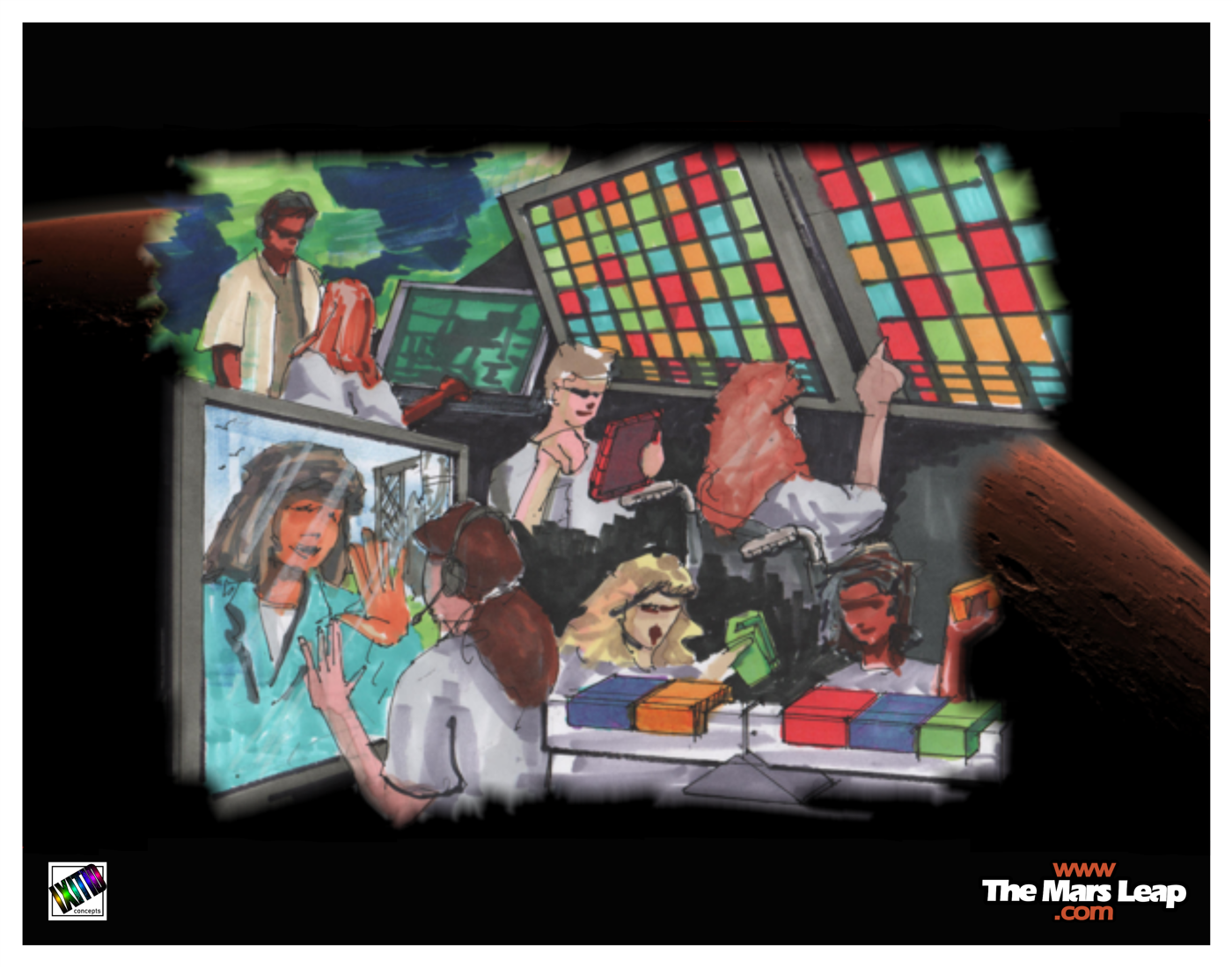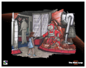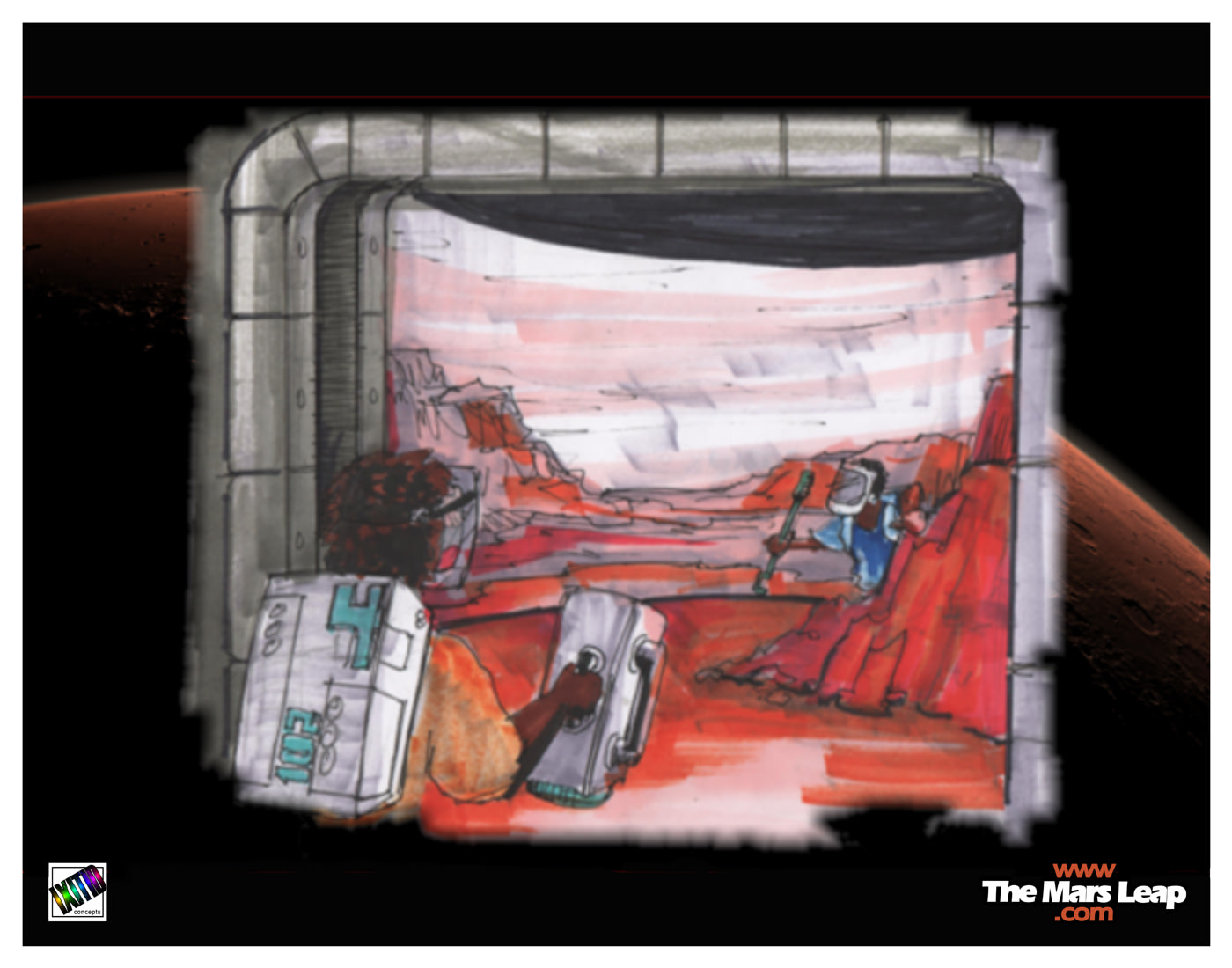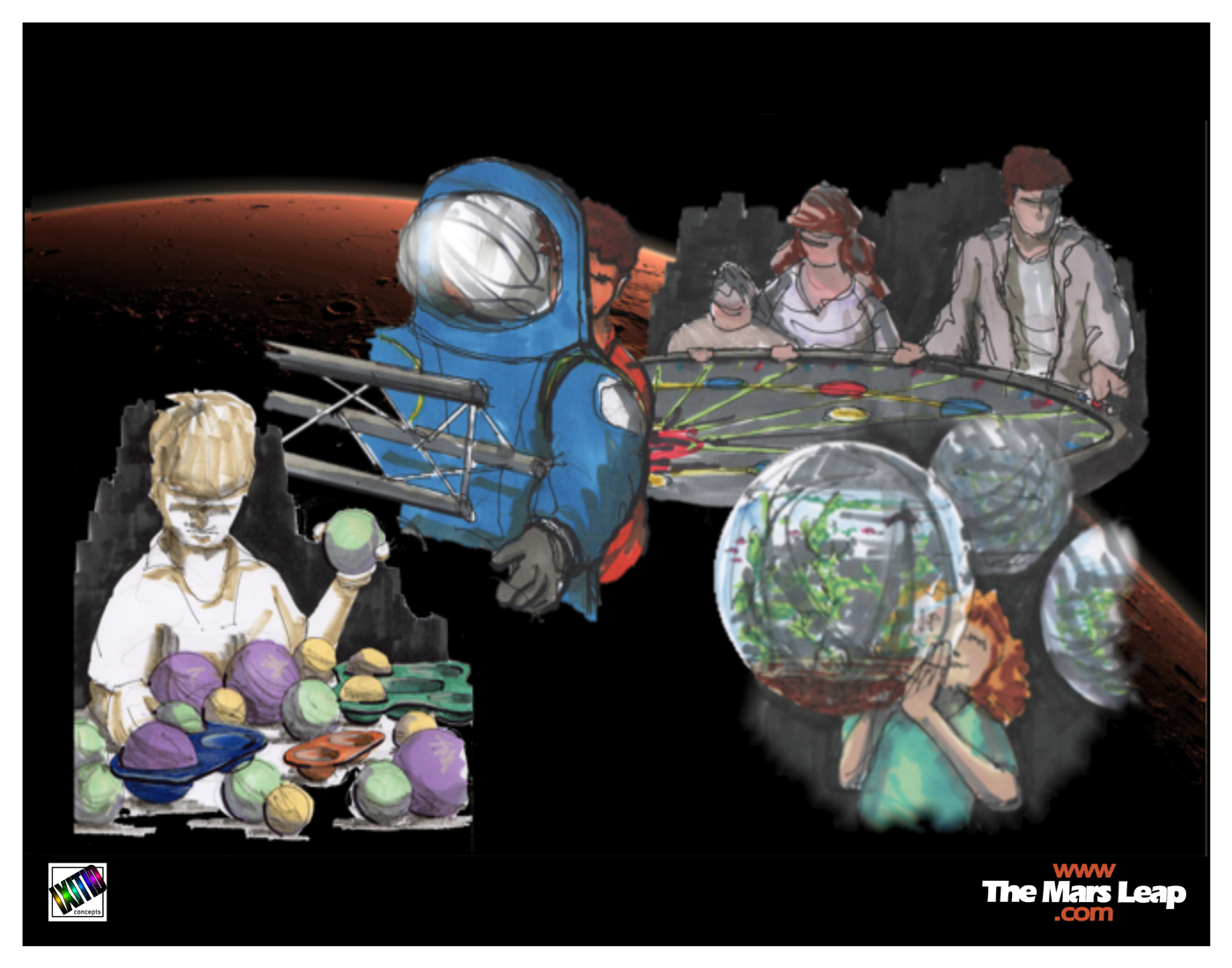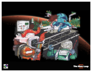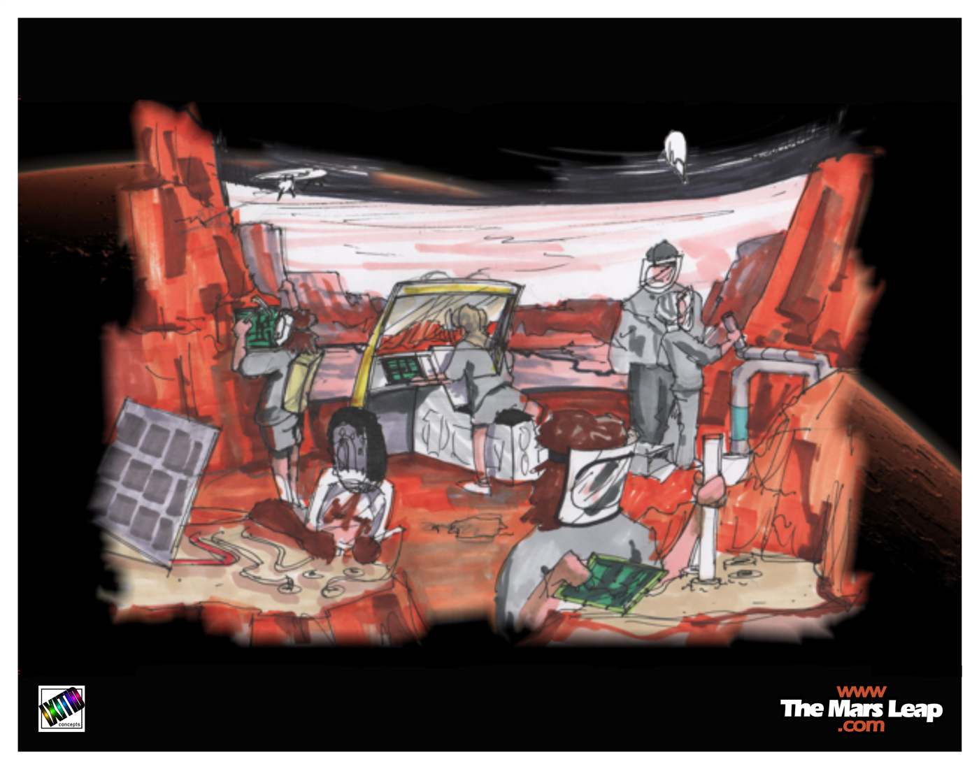 The Mars Leap is designed to give each visitor a taste of their own possible future in Space and then give them tools to make it a reality.  It’s a travelling,  immersive, interactive, educational exhibit for large regional science museums, letting visitors join a mission to scout the first Martian colonies.