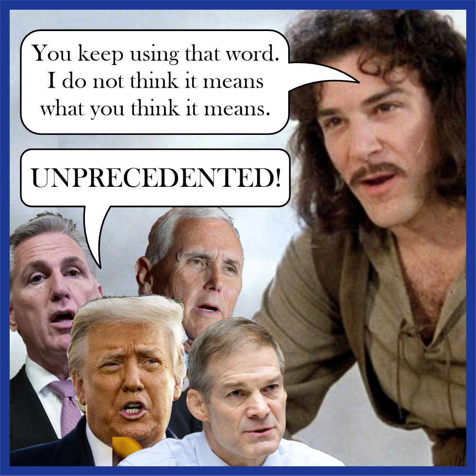 This week, an unprecedented thing happened when an ex-president was indicted. I’ll admit to a little jubilation… OK, maybe more than a little, but I’m not proud of it. Donald Trump hasn’t paid any price for debasing democracy and humanity, so it IS very satisfying to watch his first brush with accountability. The Rule of Law has been weakened until it seemed doubtful whether it could still work at all (and it hasn’t yet) but this indictment may be the beginnings of equal justice again. Schadenfreude may be misplaced but ‘satisfaction’ and maybe even ‘relief’ aren’t.