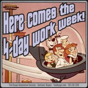 The 4-day work week is coming like a freight train. A very, very slow freight train, but a freight train nonetheless. Here are two articles on it; one describing plans for Britian’s biggest-ever trial of the idea, and another telling you how it turned out. Take a day off and enjoy!