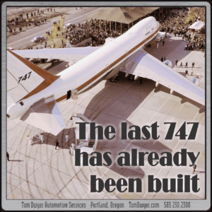 (from the Wall Street Journal)- “Known for its distinctive hump and upper deck, the “Queen of the Skies” made long-haul travel affordable for the masses decades ago and for many symbolizes the golden age of air travel.  “Because of its size, because of its range, the economy of this giant airplane… it really gave wings to the world”, said Boeing historian Mike Lombardi.  The four-engine jumbo jet has carried the space shuttle and, as Air Force One, the US president…”