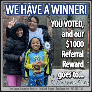 YOU VOTED, and our $1000 Referral Reward goes to…
