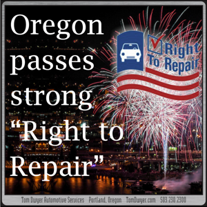 (from OPB)–  “Oregon has become the latest state to enact a so-called “right to repair” law. Advocates say the bill signed by Gov. Tina Kotek on Wednesday creates the nation’s strongest protections for consumers with broken tech devices… Under the law, companies that make cellphones and other consumer electronics are required to provide the tools and know-how to repair those devices.”  Oregon’s law specifically excludes autos (among other categories), but you’ll find more about Right to Repair in this FAQ on Oregon’s Right to Repair, “Automakers Claim They Can’t Comply With Right-to-Repair Laws”, and “National Right to Repair” from the AutoCare Association.