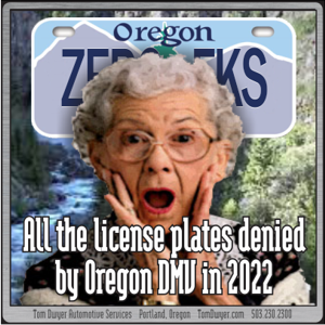 (from KOIN)- “The Oregon DMV welcomes a wide variety of words and phrases on custom license plates, but it has to draw the line somewhere. On the application for a custom vanity license plate, the DMV states that the word or phrase used in the six-letter space cannot refer to things like intimate body parts, sexual functions, alcohol or other controlled substances. They also can’t be offensive to a person or a class of people. But even with those rules clearly printed on the application, the DMV receives a couple of hundred requests every year that it must deny. Here is the full list of rejected plates from 2022…” WARNING: As you might expect, some of these are pretty crude. Be prepped.