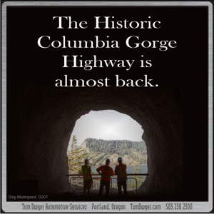 from Kristian Foden-Vencil, OPB– “There are 77 waterfalls along the Columbia River Gorge, and that’s just on the Oregon side. You can catch a glimpse of some as you drive along Interstate 84. But for the best views, you need to travel the old Columbia River Highway, which snakes along the basalt walls offering one picture book scene after another… ODOT has already created hiking trails along some stretches. Other portions remain open to everyday driving. The hope is that, eventually, people will be able to bike or hike the entire length without a break. And stretches where cars aren’t currently allowed will be open for vintage automobiles on special days. They imagined something like the great scenic roads of Europe…”
