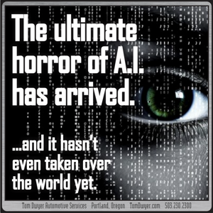 Maybe it’s not as bad as living in a post-apocalyptic hellscape where our robotic overlords hunt us for sport, but maybe it’s worse.  Either way, we thought it’d bring a few shivers to you this Halloween… at least, that’s what our A.I.  said.