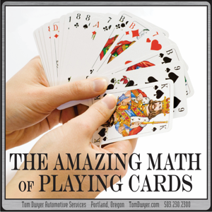 (from Polygon.com) “One of the embarrassment of applied probability is that we can not analyze the original game of solitaire… What’s the chance of winning, how to play well, how do various changes of rules change the answers?” Diaconis wrote. “Surely you say, the computer can do this. Not at present, not even close.” It’s not hard to see the relationship between magic and math. Cards contain limitless possibilities. In fact, math tells us there are more combinations of cards in a 52-card deck than there are atoms on Earth…”