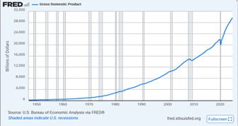Perhaps most importantly, a rising tide of a strong national economy may not lift all boats and our personal economies may be unsustainable even if the country as a whole is doing great. Check that GDP number from our first GDP graph, smoothly and consistently rising from 1950 on. By that measure our economy has been growing, but the share of adults living in middle-class houses fell from 61% in 1971 to 50% in 2021, according to a new Pew Research Center analysis.