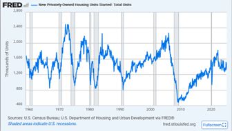New Privately-Owned Housing Units Started: Total Units, Federal Reserve Bank Economic Data