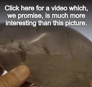 Tom swung by the other day with a new addition to our lobby rock gallery, and you just have to see it! It’s a piece of quartz about 8” high that’s got a pocket of air and water that’s been trapped inside for millions of years. Check out this video for now, but ask about the rock next time you’re in… Charles will gladly get it out and show you!