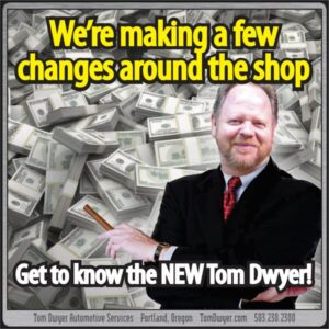 “I wrote the first rent check for Tom Dwyer Automotive Services on October 7, 1987, almost thirty-eight years ago.”  We sat down to chat with Tom Dwyer, the man who wrote that check, to talk about his plans for the future of the company.  “Since then we’ve built a successful business on quality service, reasonable pricing, and advice in our clients’ interests.”  He paused to thoughtfully rearrange a few papers on his desk.  “But I guess it’s never too late to change.”